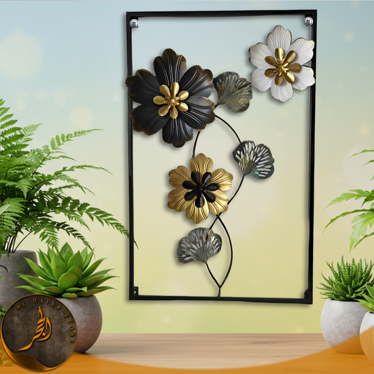 Metallic Round Black Floret Wall Hanging